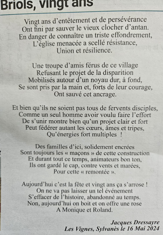 Le 25 mai 2024 a eu lieu la fête des 20 ans de l'association en présence de nombreux adhérents et sympathisants, ainsi que d'élus locaux et de la sous-préfète de Millau.